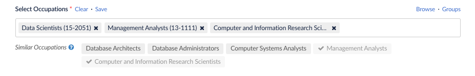 Similar Occupations in Search Filters