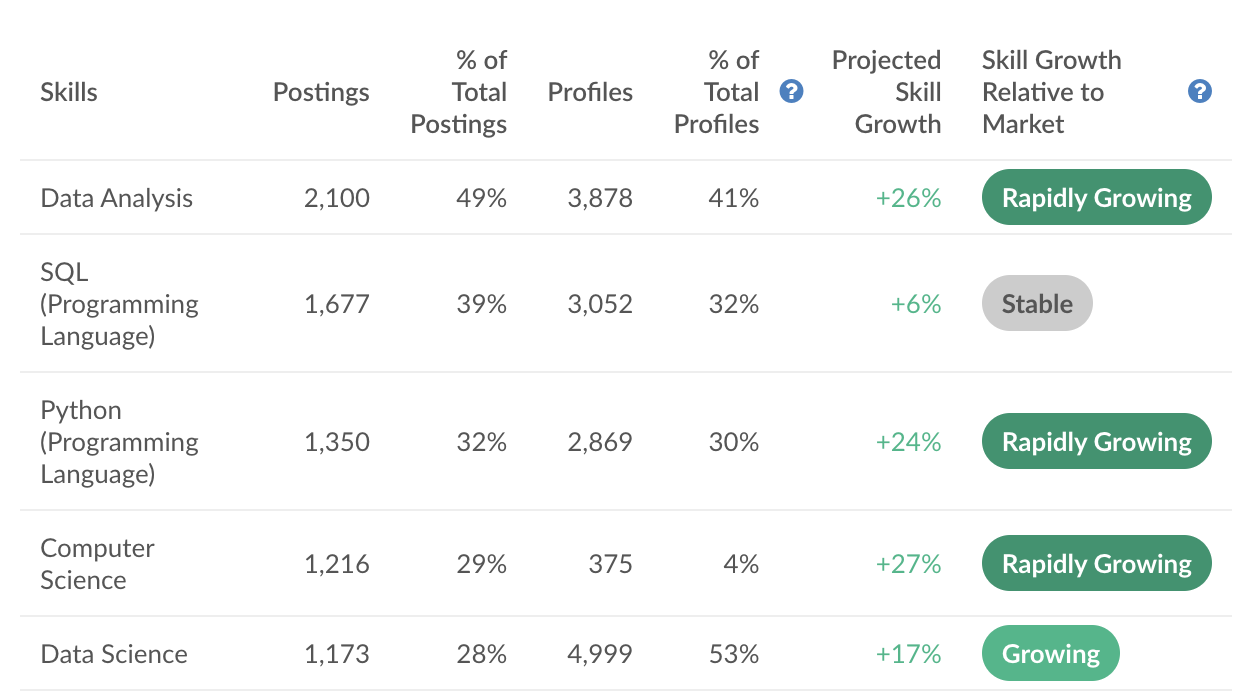 Rapidly Growing skills are those increasing in demand significantly faster than the market as a whole